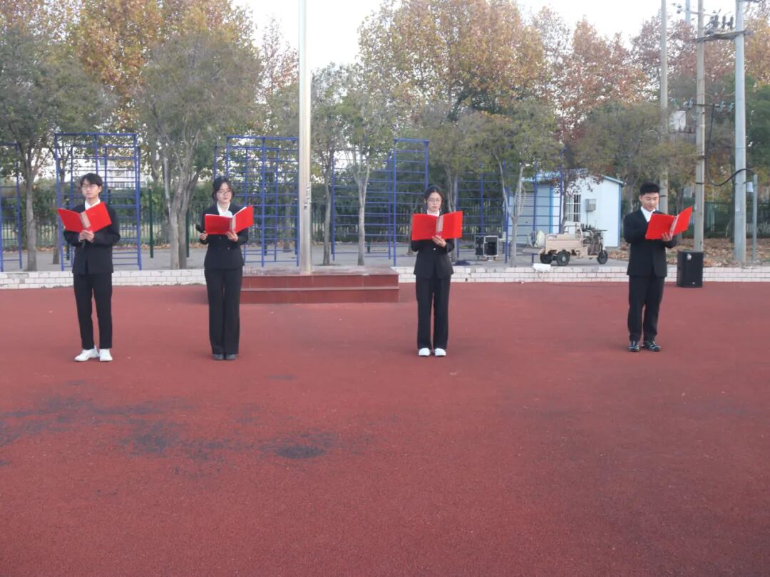 11月24日,威廉希尔足球指数网在梁园校区体育场举办了“青春向党,挺膺担当——学习贯彻党的二十届四中全会精神”主题的升旗仪式。威廉希尔足球指数网领导、辅导员老师及2025级全体学生共同参加本次升旗仪式。